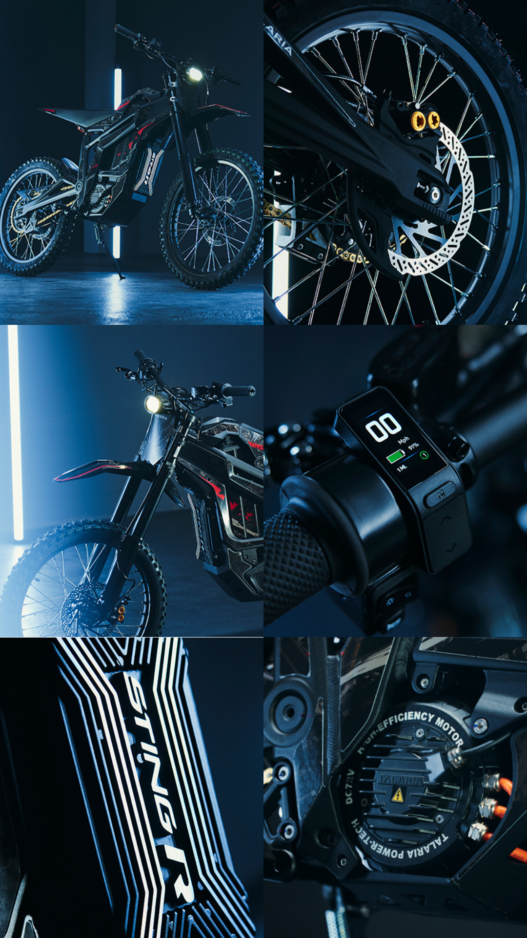 By pushing technological boundaries, the Talaria Sting R Pro reshapes the future of motorcycling. Delivering unmatched performance and inspiring a shift toward sustainability, it demonstrates the potential of electric motorcycles to exceed the capabilities of traditional machines. The Sting R Pro takes performance to the next level with a 72-volt power output and 13-kilowatt peak power, making it adaptable to every rider`s preference. Building on the foundation of the Sting R, it features overhauled braking, an improved drive chain, upgraded hubs, a new display, performance footpegs, and countless other upgrades. Delivering effortless power, superior control, and unmatched comfort, it lets you ride anywhere, embrace the future, and enjoy the thrill, without disturbing the peace.